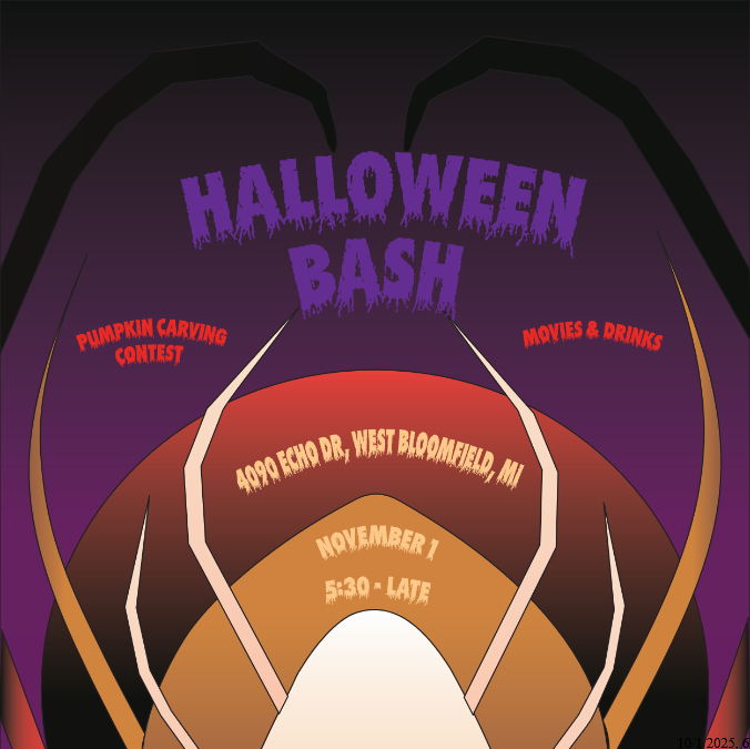 This is a flyer I had created for a Halloween Party we are throwing. This is my first use of Adobe Illustrator.